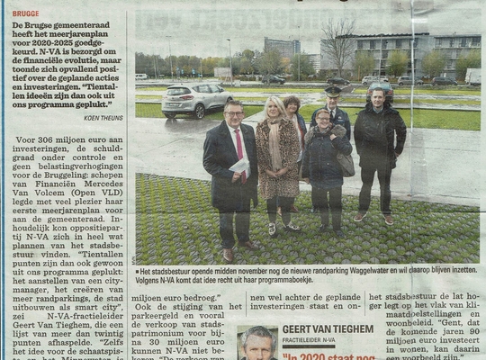 Voor 306 miljoen euro aan investeringen, de schuldgraad onder controle en geen belastingverhogingen voor de Bruggeling: schepen van Financiën Mercedes Van Volcem (Open VLD) legde met veel plezier haar eerste meerjarenplan voor aan de gemeenteraad. Inhoudelijk kon oppositiepartij N-VA zich in heel wat plannen van het stadsbestuur vinden. “Tientallen punten zijn dan ook gewoon uit ons programma geplukt: het aanstellen van een citymanager, het creëren van meer randparkings, de stad uitbouwen als smart city”, zei N-VA-fractieleider Geert Van Tieghem, die een lijst van meer dan twintig punten afhaspelde. “Zelfs het idee voor de schaatspiste op het Minnewater is door N-VA gelanceerd.”